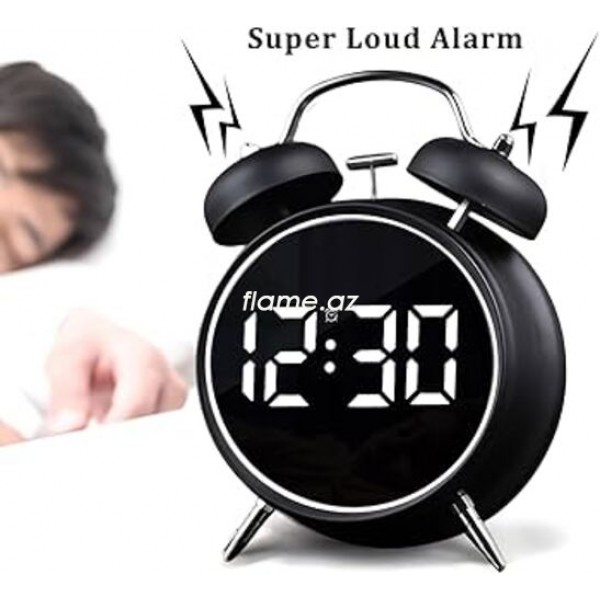Металлический Led часы Будильник цифровой с двойным звонком, бесшумный