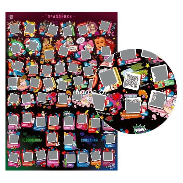 Рекомендации: положите плакат на ровную твердую поверхность и с помощью пластикового скребка или стека (не входит в комплект) аккуратно удалите защитный скретч-слой с нужной ячейки.