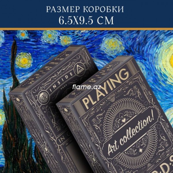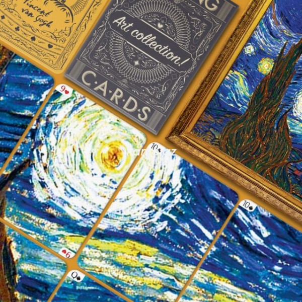 Игральные карты с иллюстрациями произведения Винсента ван Гога «Звёздная ночь». Прелесть этой колоды в том, что её можно сложить как пазл и получить цельную картину.